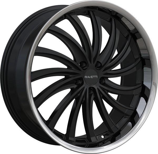 22X9.0 5-120 +35 74.1 BLACK WITH STAINLESS LIP