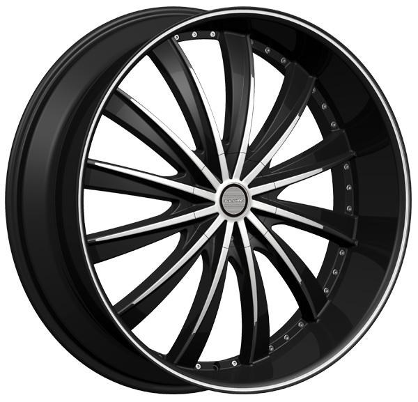24X9.5 5-115 / 5-127 +13 78.1 BLACK W/MACH FACE / PINSTRIPE